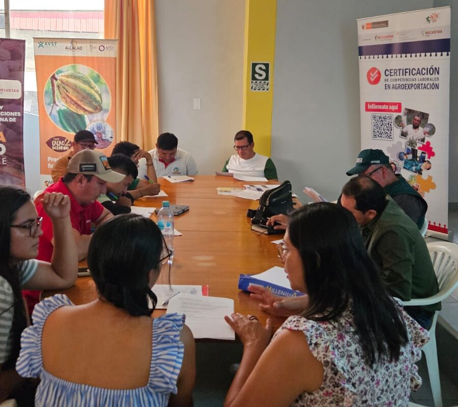Juanjuí, San Martín, noviembre de 2025. – Durante los días 4 y 5 de noviembre se realizó en Juanjuí el proceso de aplicación y actualización de instrumentos de evaluación para los perfiles ocupacionales vinculados a la certificación orgánica, como parte de la iniciativa “Fortalecimiento de la certificación de competencias laborales en agroexportación”, implementada por el Ministerio de Trabajo y Promoción del Empleo (MTPE) con la asistencia del Programa SeCompetitivo de la Cooperación Económica Suiza – SECO, implementado por HELVETAS Perú.