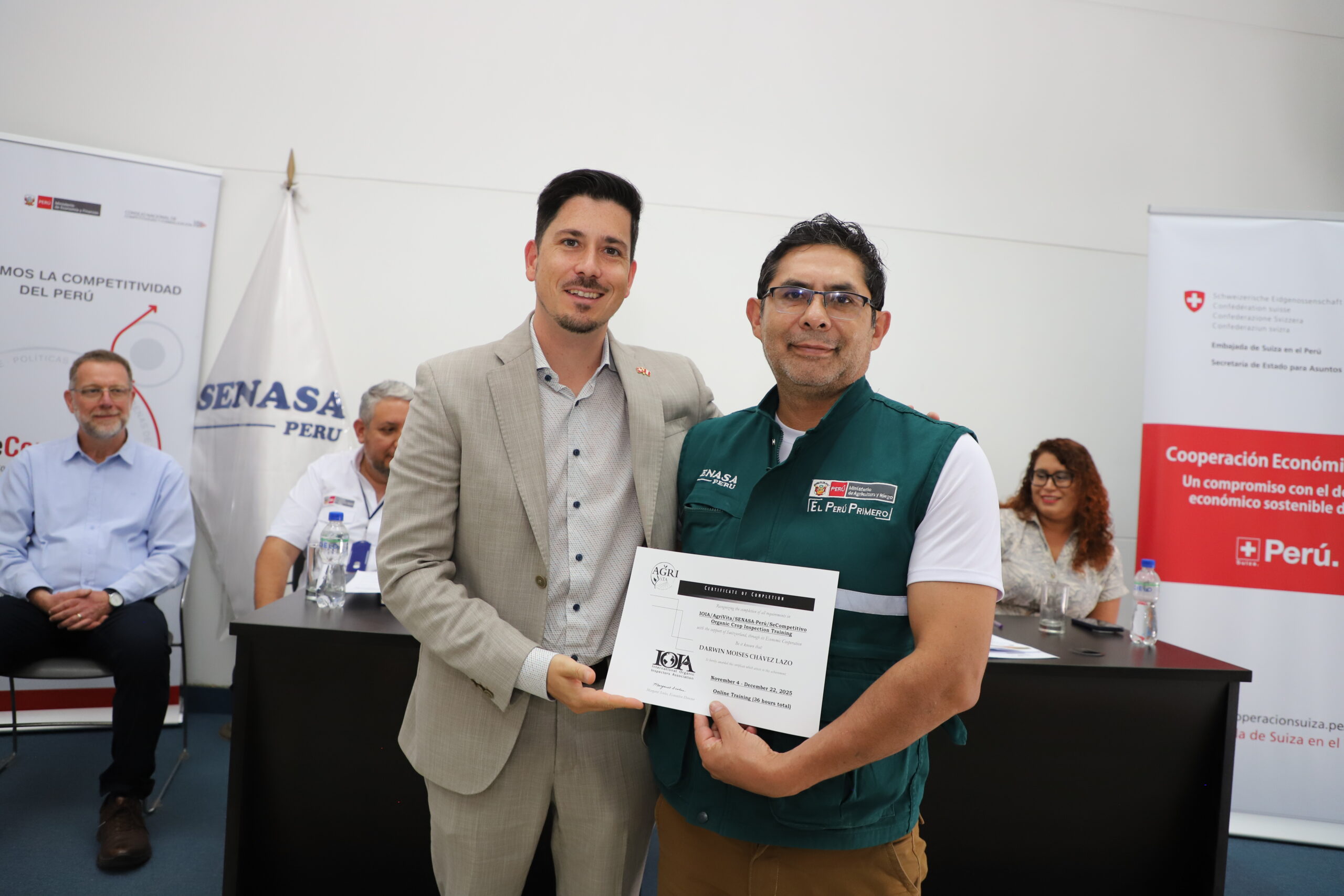 Por su parte, Massimo Bloch, director de la Cooperación Económica Suiza de la Embajada de Suiza en el Perú, resaltó que “El fortalecimiento del Sistema Nacional de Control de la Producción Orgánica es una inversión estratégica en institucionalidad. Desde Suiza, a través de su Cooperación Económica, creemos que fortalecer las capacidades técnicas de los inspectores del SENASA no solo mejora la calidad de la supervisión, sino que también refuerza la credibilidad del sector orgánico y contribuye a un desarrollo económico más sostenible e inclusivo.”