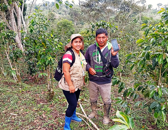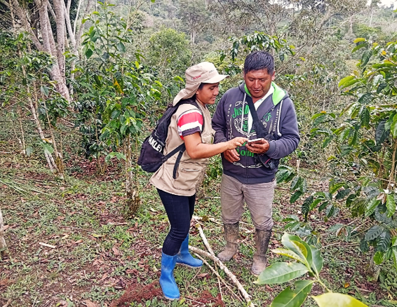Durante las visitas en la comunidad de Unión Atalaya, los productores, junto a los extensionistas, descargan desde Play Store los aplicativos y aprenden paso a paso a ubicar su parcela, trazar el polígono que la delimita y registrar fotografías del cultivo.
